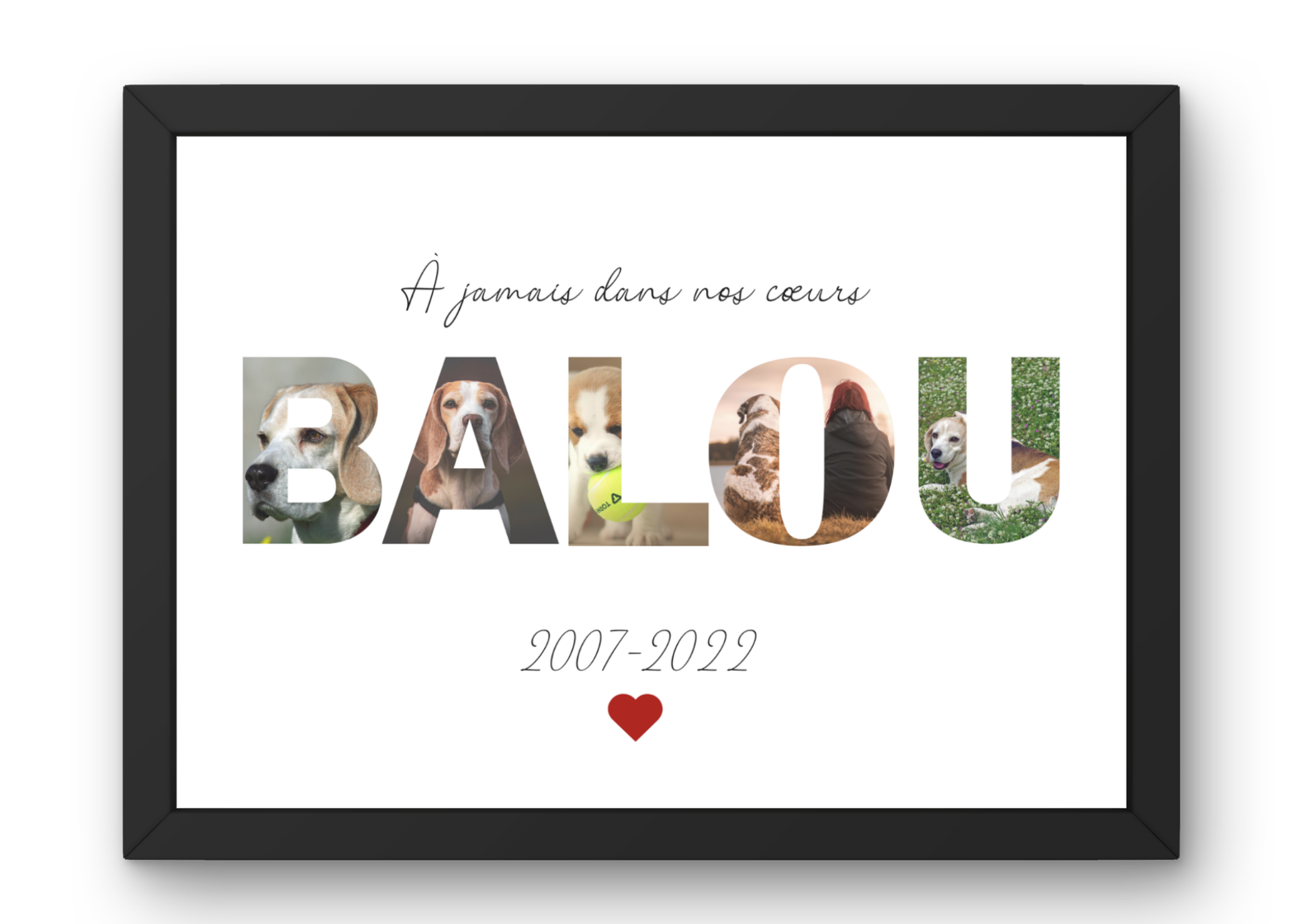Un cadre unique pour mettre à l’honneur votre fidèle compagnon. Que ce soit pour célébrer l’amour d’un chien, d’un chat ou d’un autre animal de compagnie, ou pour rendre hommage à un ami disparu, ce cadre photo personnalisé est conçu pour accueillir vos plus beaux souvenirs.