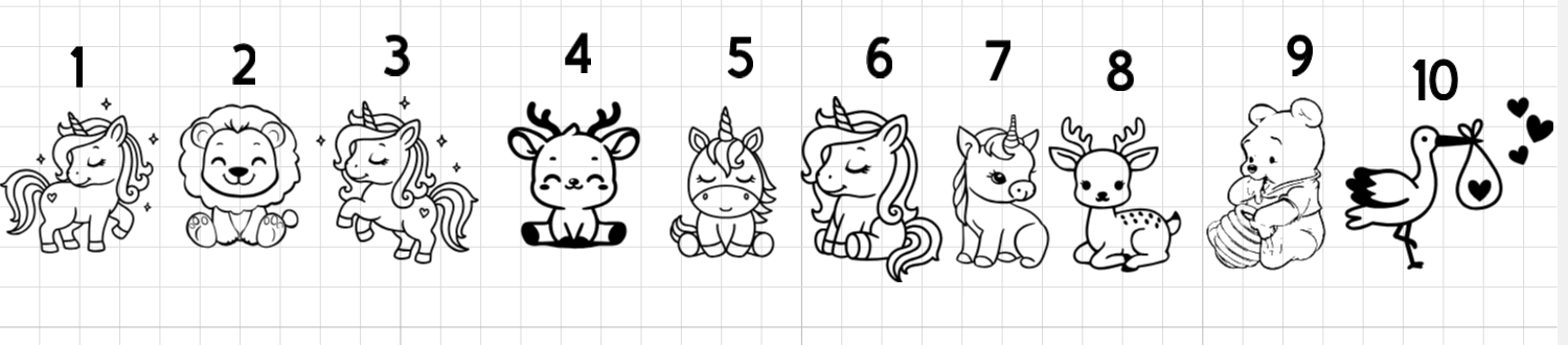 Illustration décorative : licorne, ourson, lionceau, bébé cerf, étoile, arc-en-ciel ou dessin simple à définir ensemble (indiquez le numéro de l'illustration choisie)