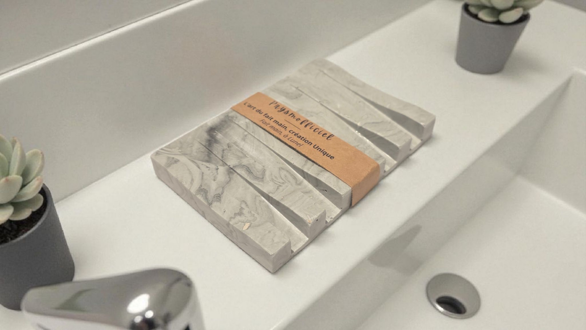 Apportez une touche d’élégance à votre salle de bain avec ce porte-savon artisanal au design minimaliste et raffiné.