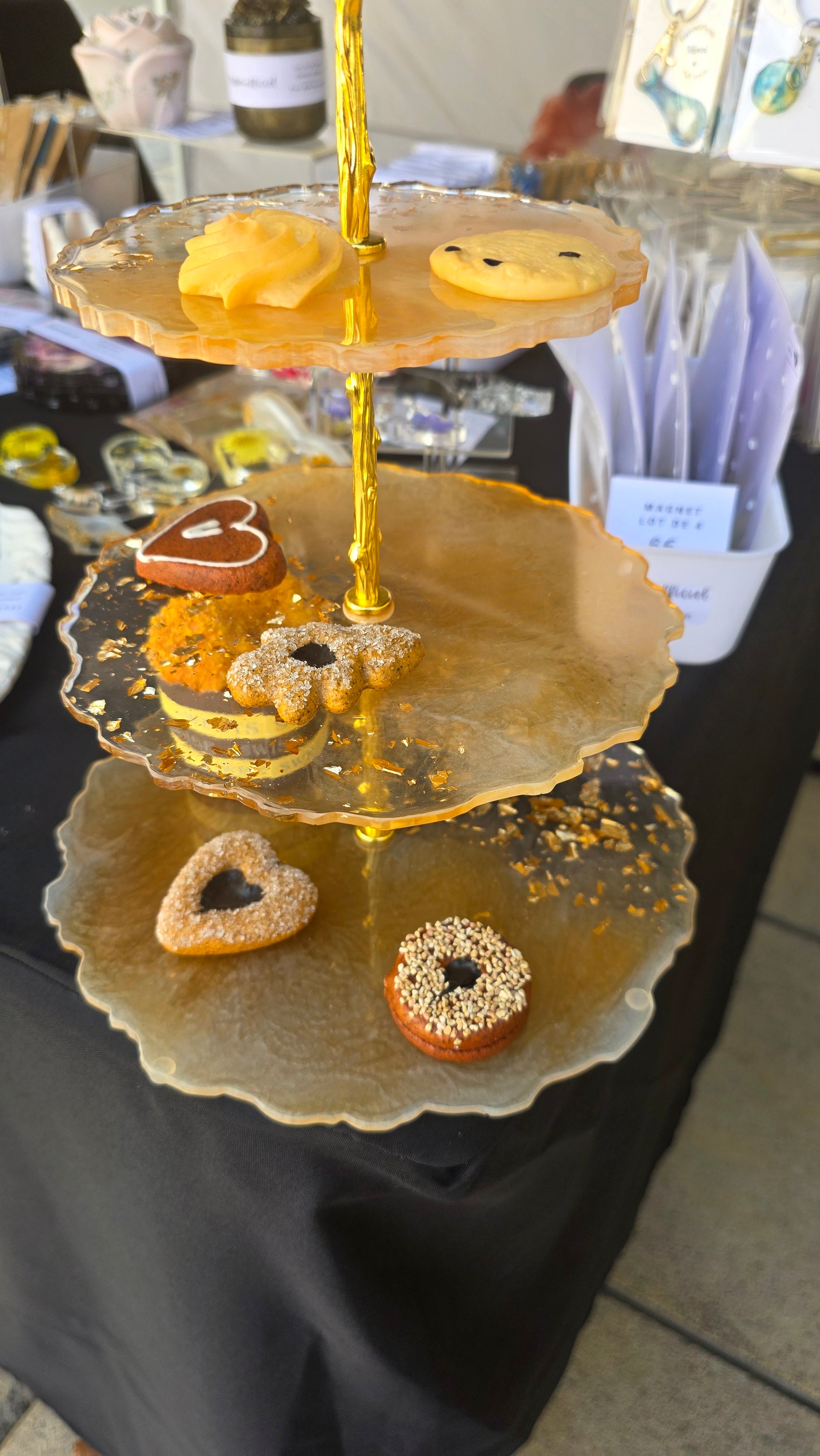 Sublimez vos moments du quotidien avec ce support 3 plateaux en résine, entièrement fabriqué à la main dans mon atelier.