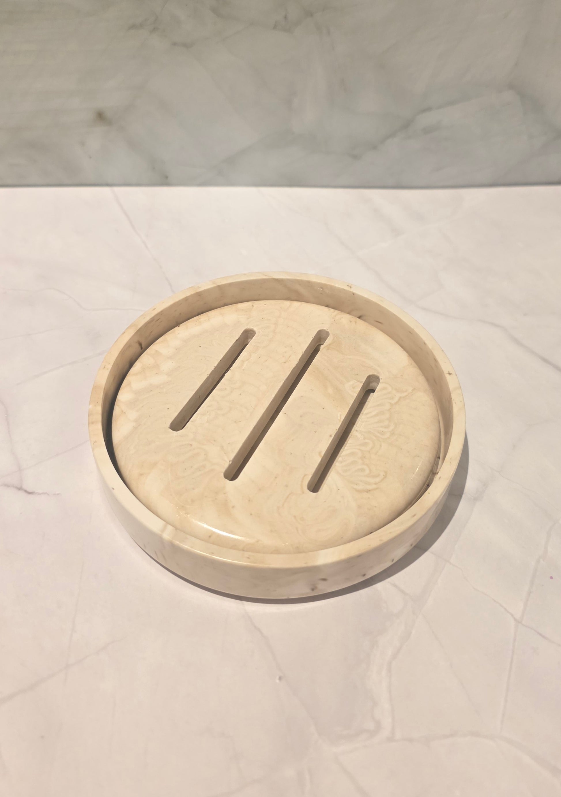 Porte-savon rond en composite minéral – Élégance naturelle & durabilité artisanale